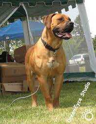 The name 'boerboel' is derived from an afrikaans/dutch word, and the large boerboel dog from south africa has been specifically bred to be a farmer's dog.